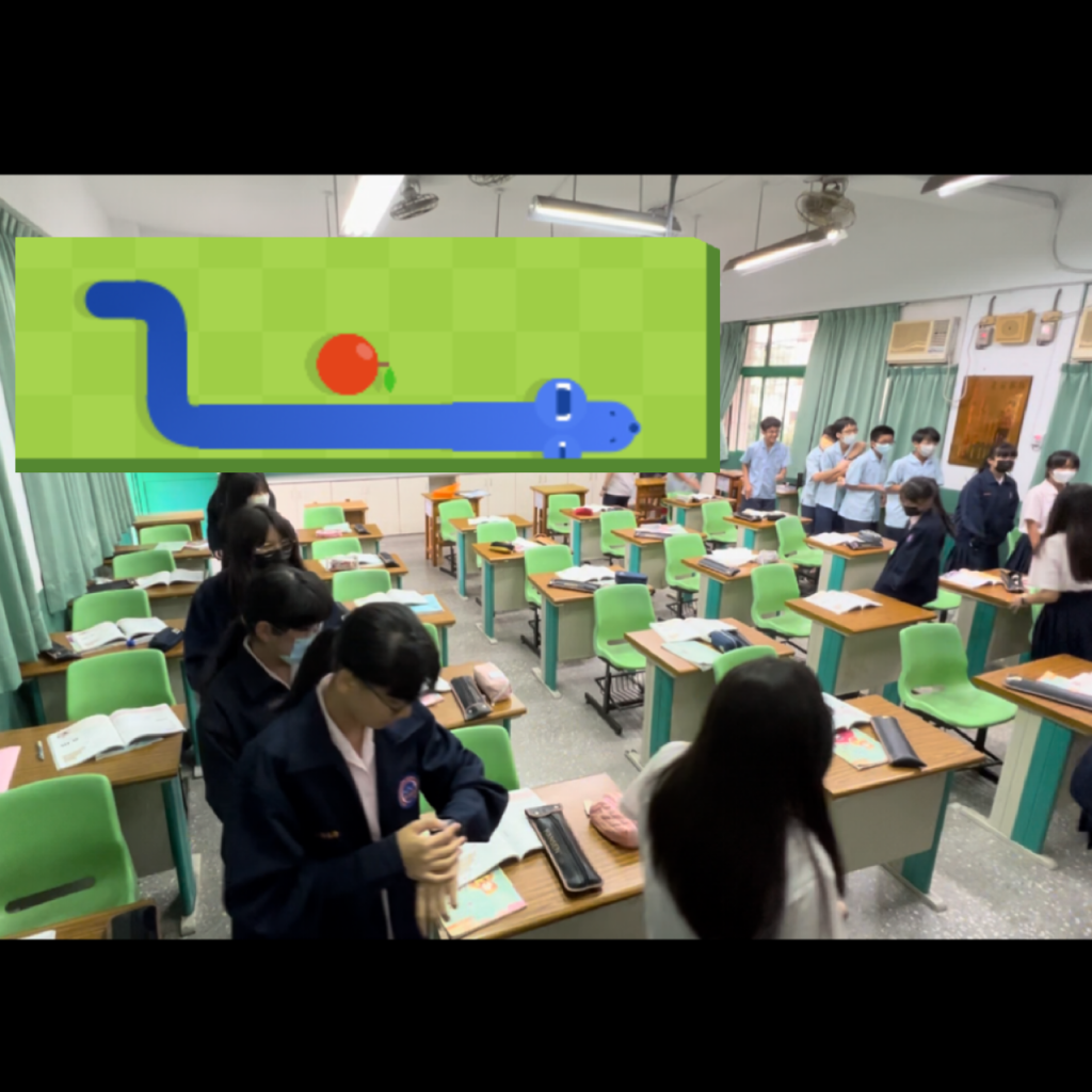以下這個是第一個班級,那個時候預備時的椅子都還沒有靠上,所以貪食蛇只能走直行的。