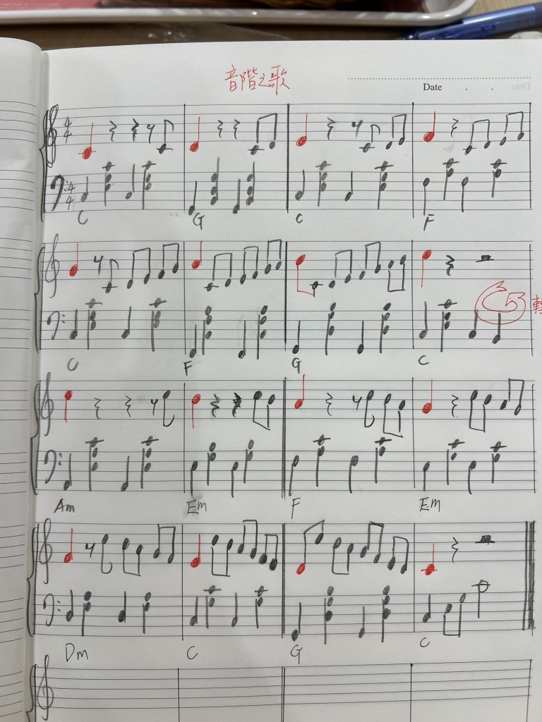 因為我自己是想要以「複習唱名」為目的,所以把所有的音都改成音階唱名。如果唱熟了可以再作延伸活動套上歌詞。