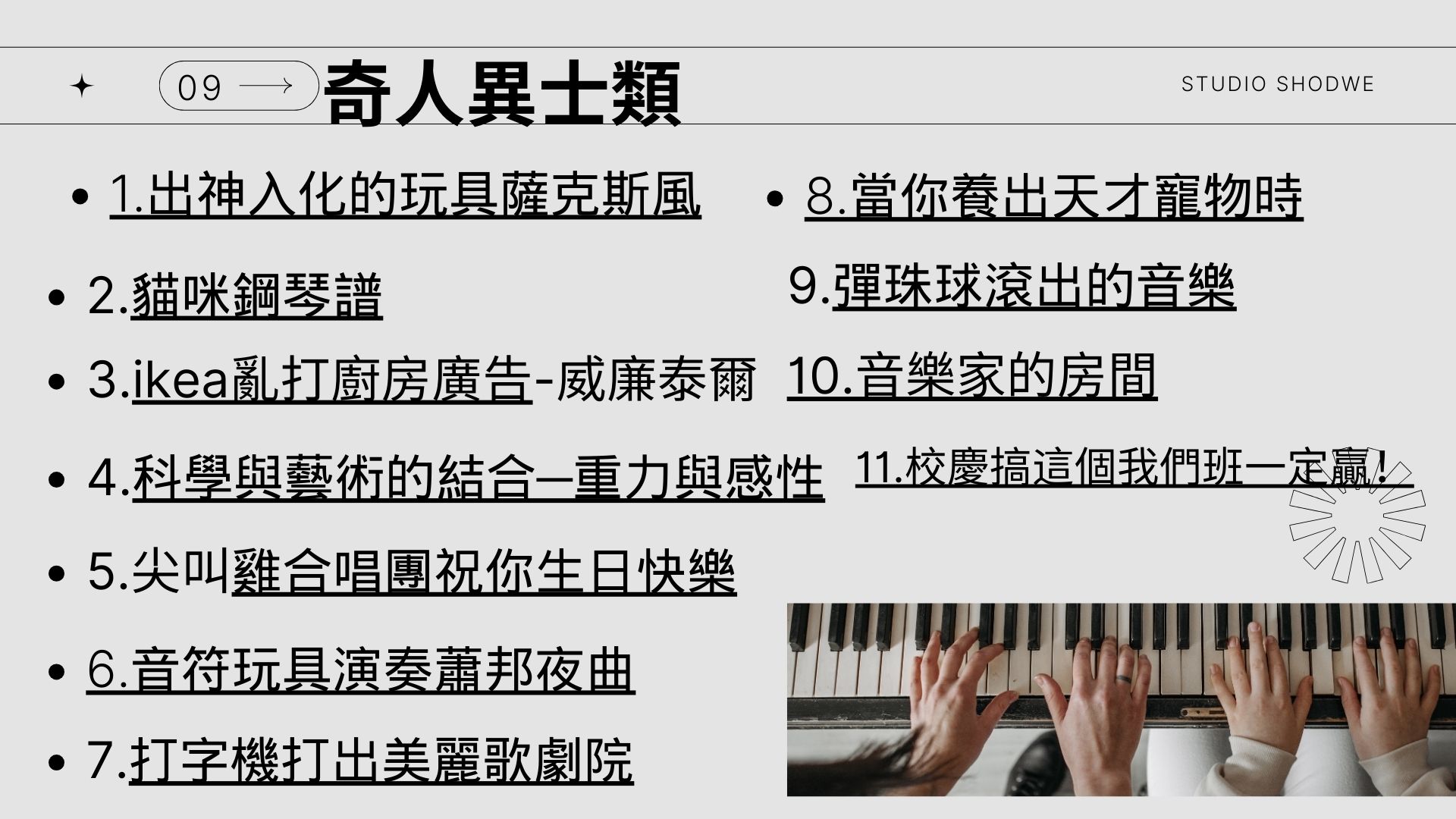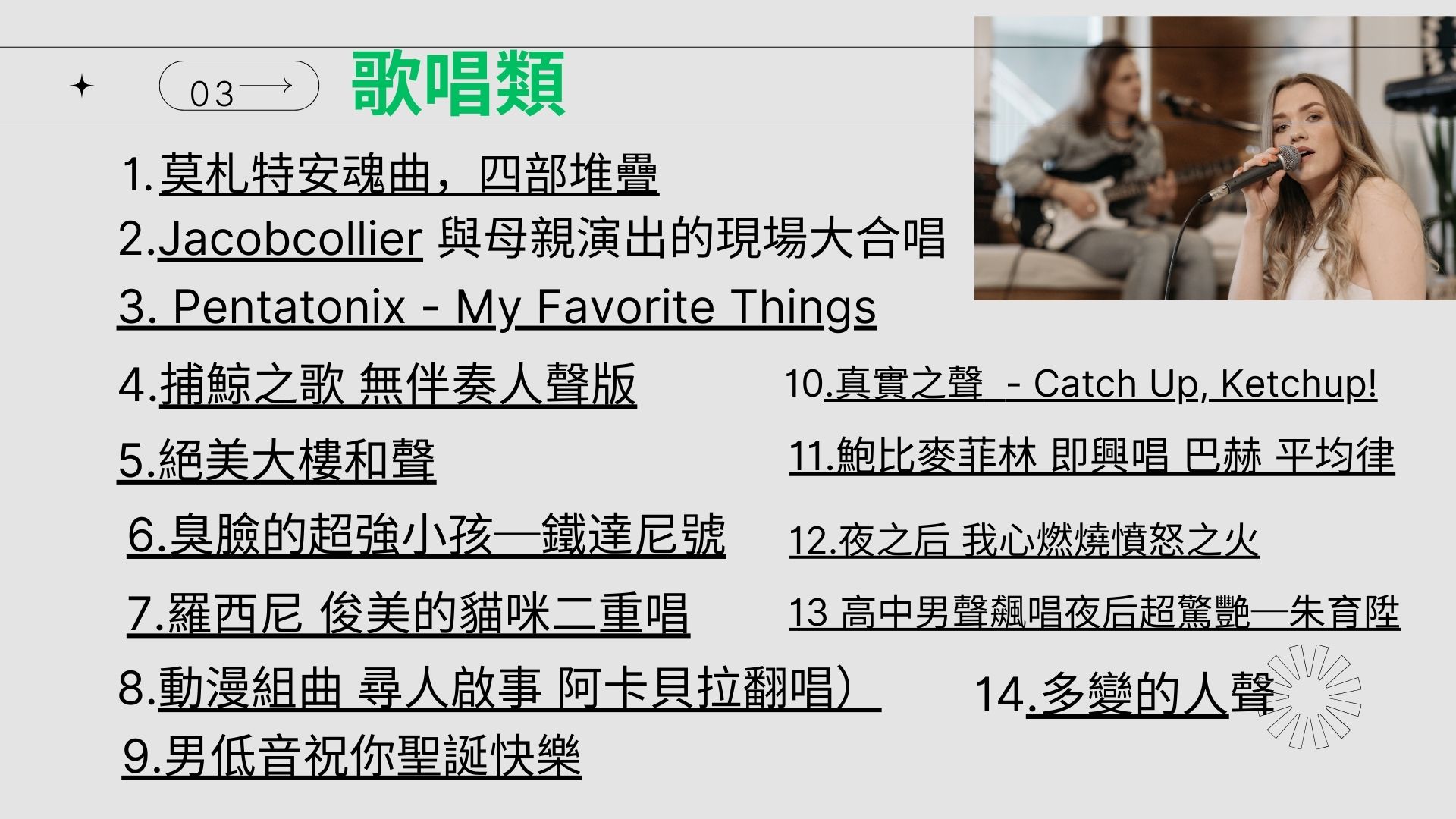 分享10類共100個音樂短片的連結,