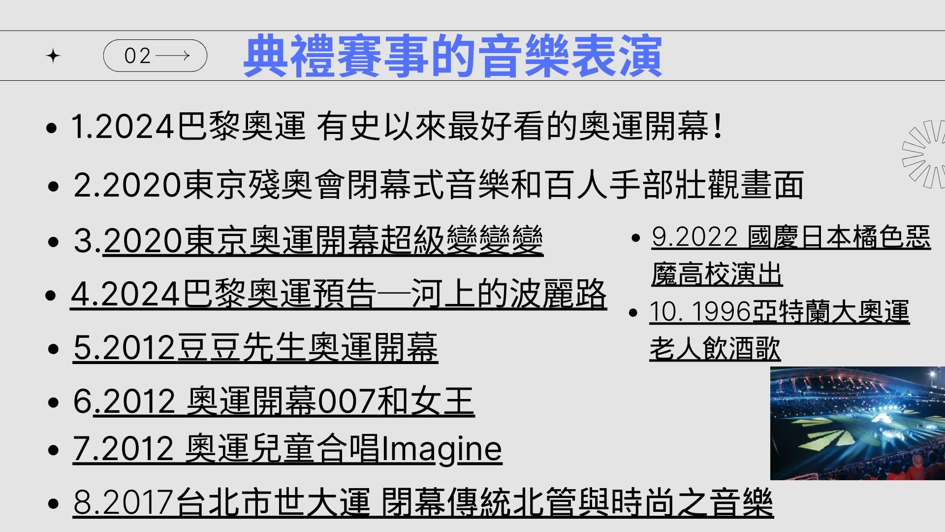我都會放1到5分鐘的課程相關有趣短片,
