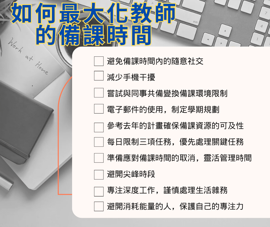 ✅ 根據自身精力狀況,靈活調整備課時間與午餐時間。